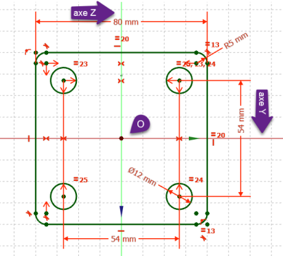 Sélectionner la face située à l'origine pour créer l'esquisse ;