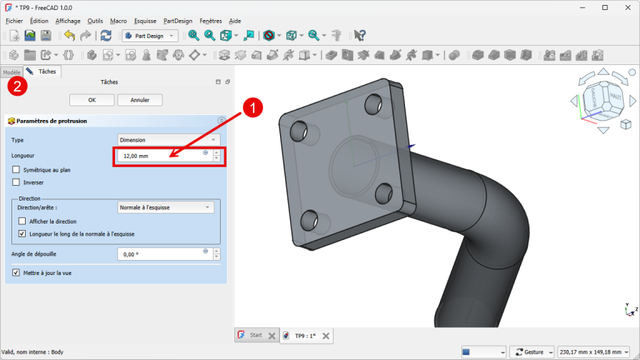 Sélectionner la face extrême située à l'origine et créer l'esquisse