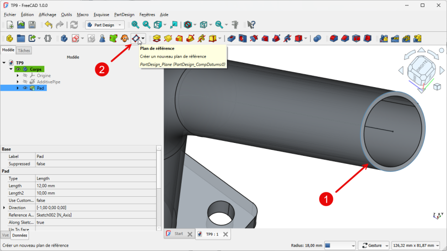 Pour positionner correctement la seconde esquisse, nous allons créer un plan de référence