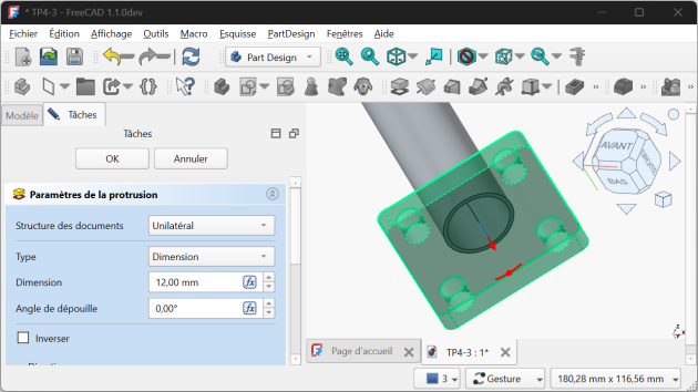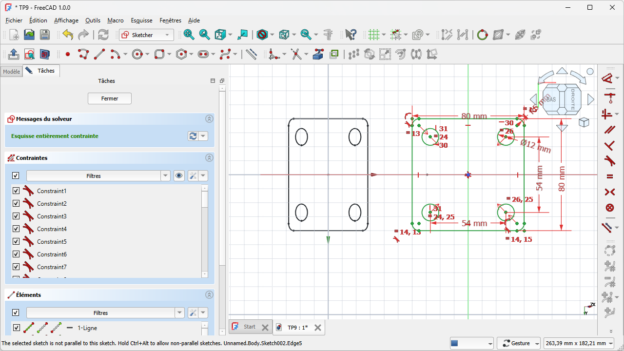 Modèle, masquer le plan de référence, l’objetPadmais afficher l’esquisse de la 1ère platine ;Les deux esquisses n'étant pas dans le même plan, il faut maintenir appuyées les touches :