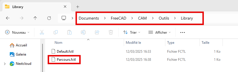 Pour faire apparaître la nouvelle bibliothèque Parcours dans le sélecteur d'outils , il faut quitter et rouvrir FreeCAD ;
