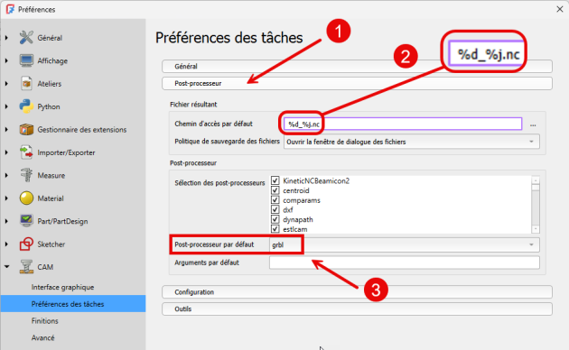 Lors de la création du fichier g-code, FreeCAD reprendra le nom du fichier FCStd, suivi du nom de la tâche