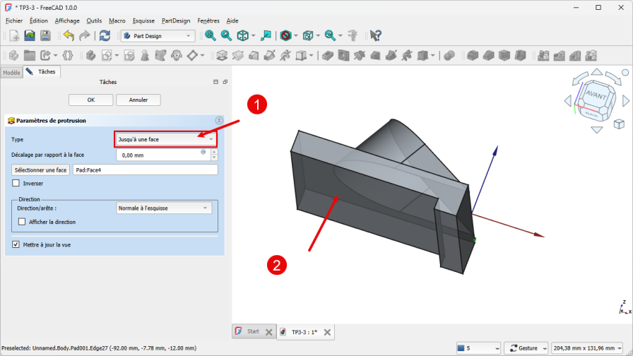 Modèle, masquer le plan de référence à l'aide du boutonpour mieux voir l'esquisse ;