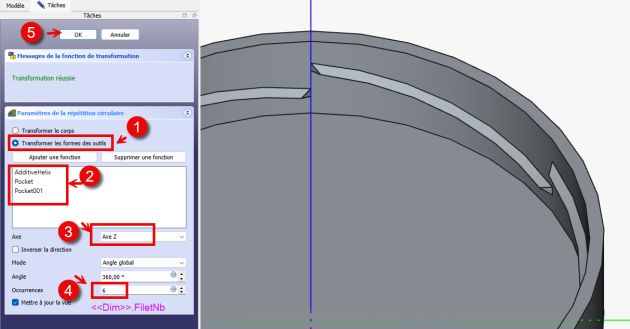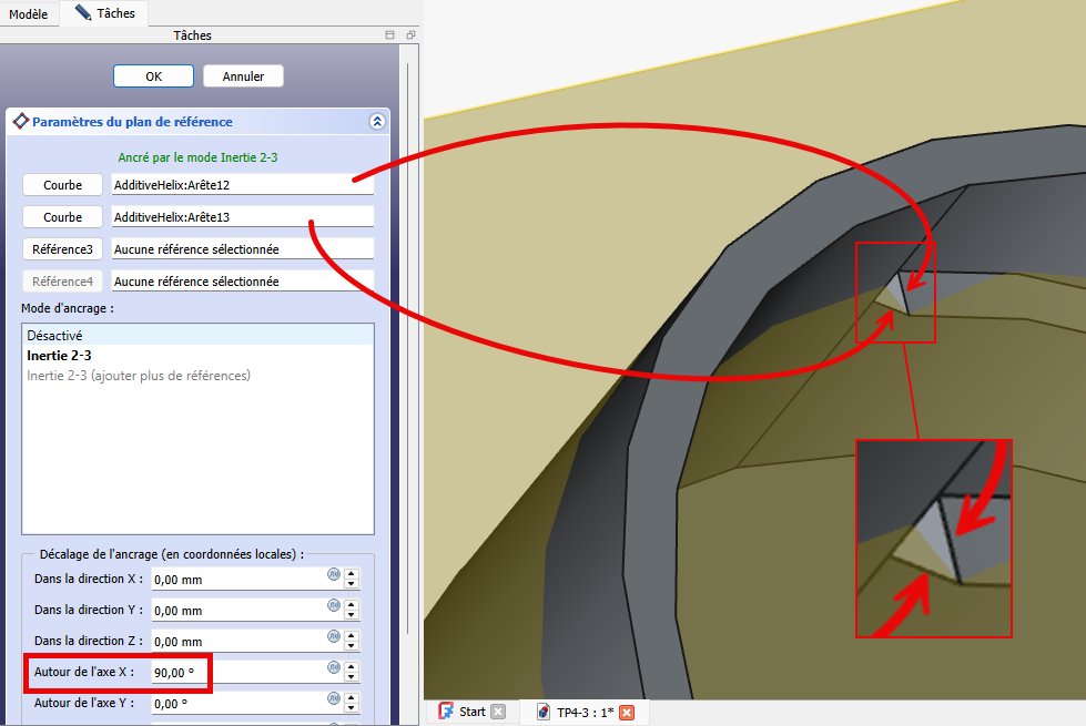 A l’une des extrémités de l’hélice, sélectionner les deux cotés et créer un plan de référence