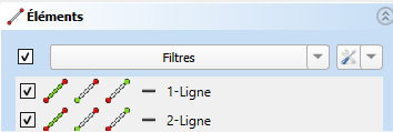 Liste des géométries de l'esquisse : le menu contextuel (clic droit) permet notamment de supprimer une géométrie ;