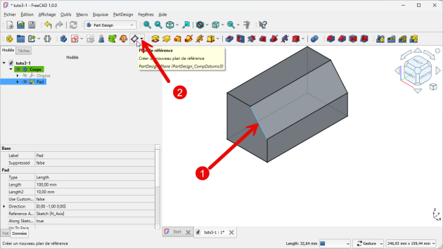 FreeCAD crée le plan de référence normal à l’arête⚓