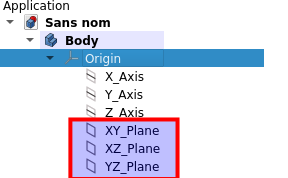 Chaque fois que vous créez un nouveau corps, trois plans sont créés et associés à ce corps : XY, YZ et XZ.
