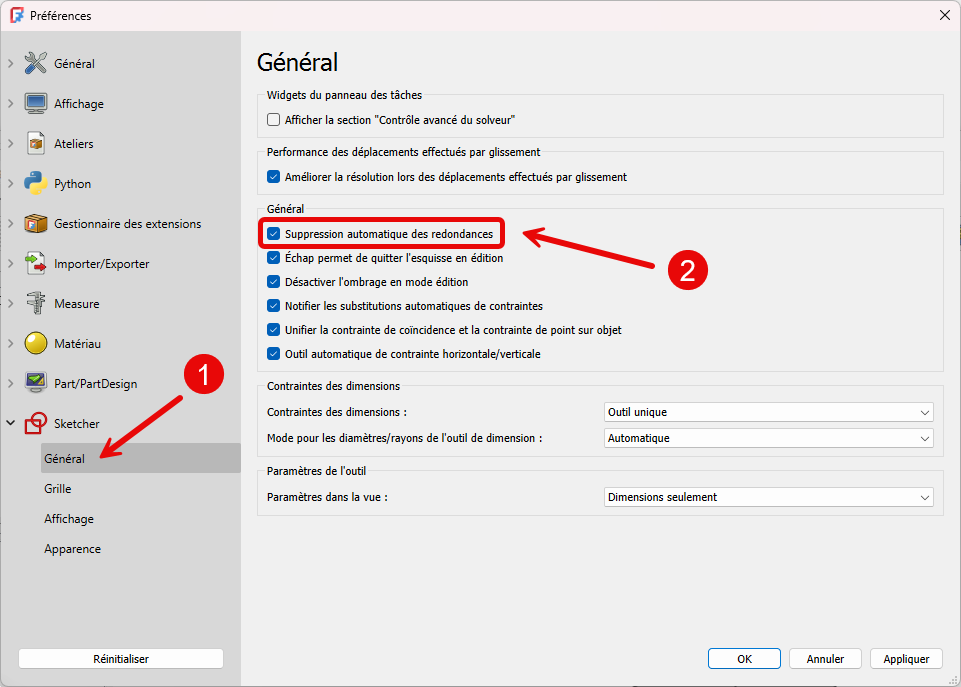 du panneau Contrainteset décocher la caseSupprimer automatiquement les contraintes redondantes;