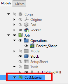 Tâche: FreeCAD a ajouté un élémentCutMaterialdans l'arborescence du document :