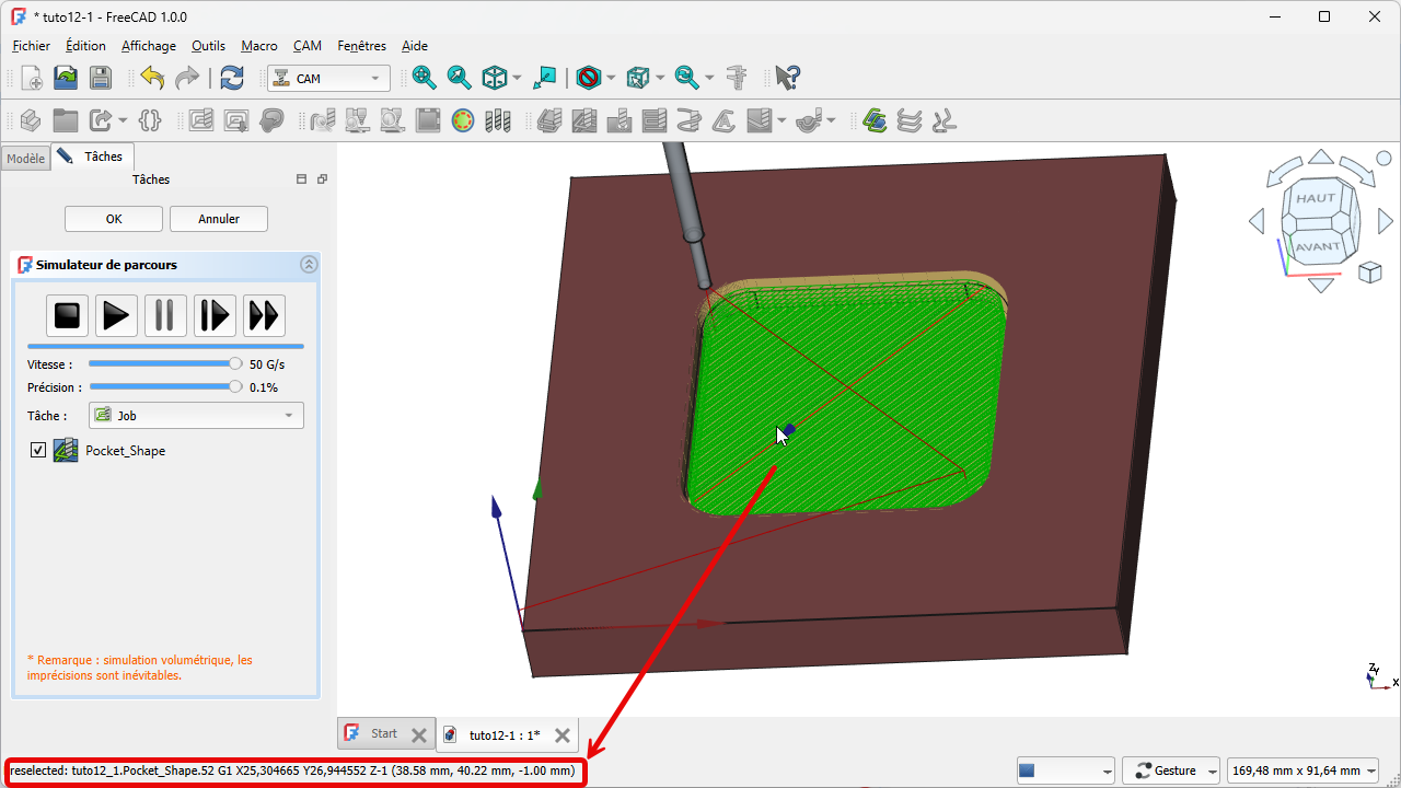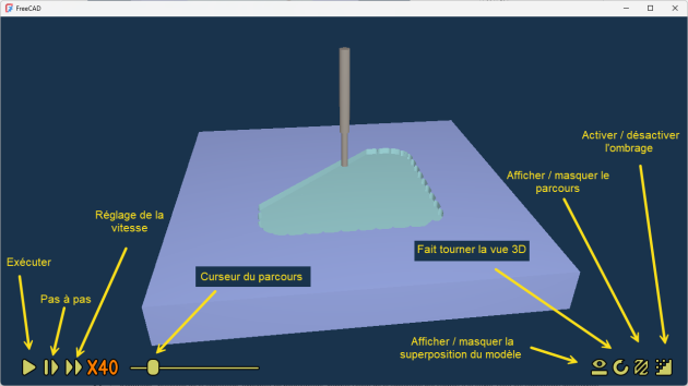 Depuis la version 1.0.0, FreeCAD propose deux simulateurs de parcours: