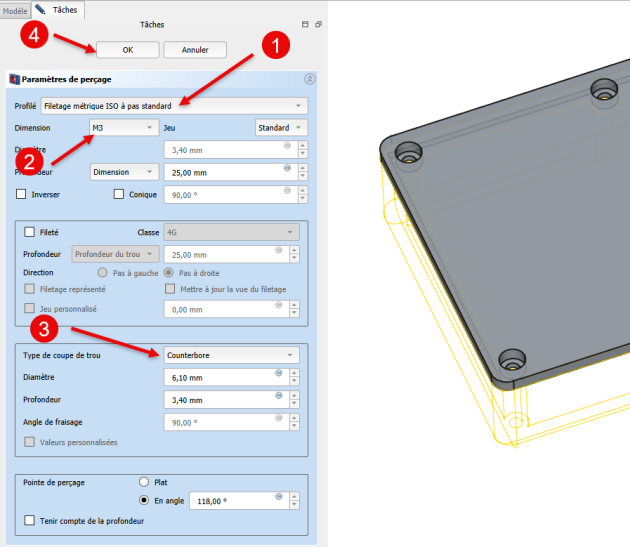 Appliquer la fonction paramétrique Perçage