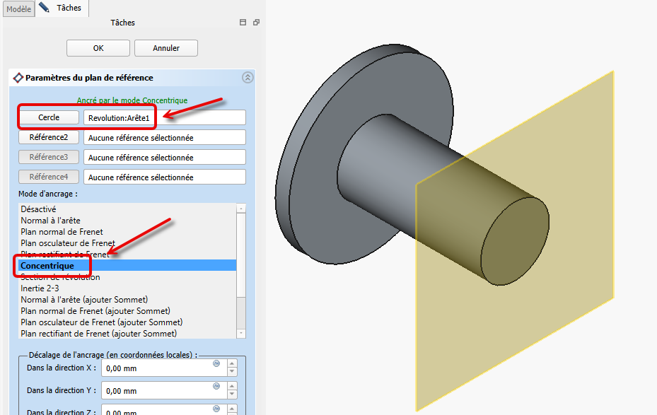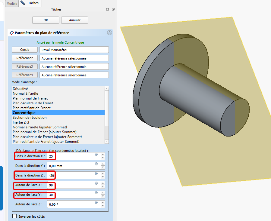 Explication du décalage et de la rotation du plan de référence