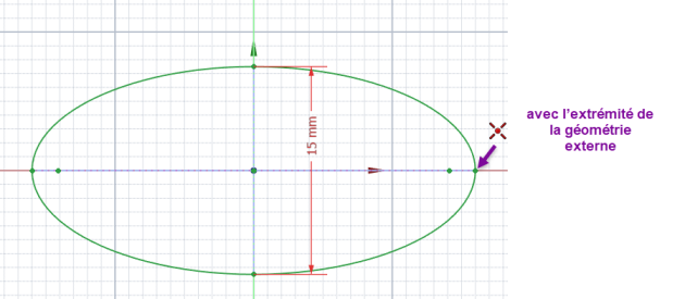 centrée à l'origine et le sommet de l'ellipse contraint à l'extrémité de l'axe de la géométrie externe ;