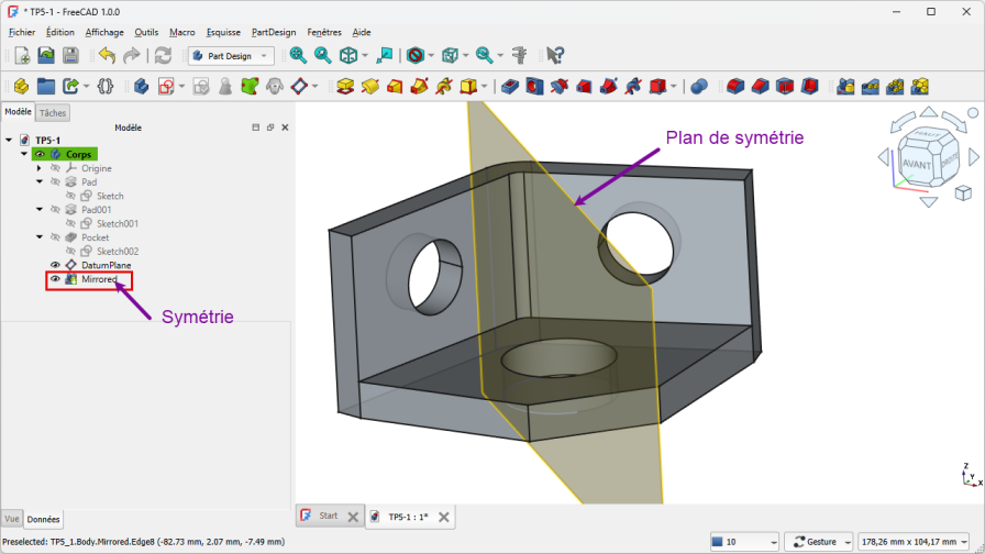 Sélectionner l'arête (1) ;