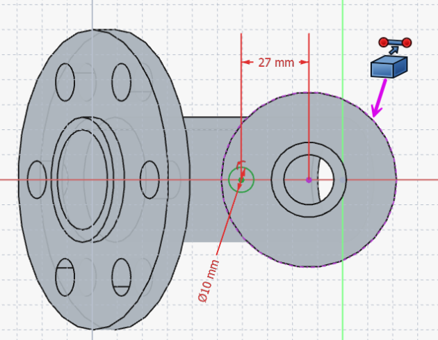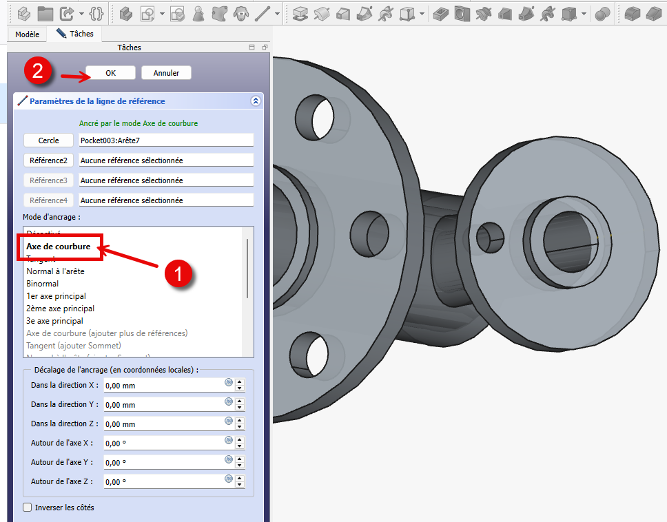 le plus procheà partir de cette esquisse ;Sélectionner le cercle externe de la petite platine et créer un ligne de référence