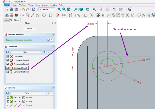 decalageà la cote horizontale de 2mmRenommer l'esquisse de