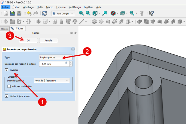 Pour ne pas avoir à saisir de dimension, la protrusion ira jusqu'à la première face rencontrée ;