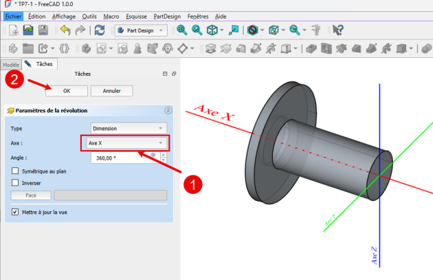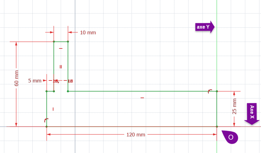 1er corpsTâches à réaliser - Tâches à réaliser⚓Créer un 1er corps ;Créer l'esquisse ci-dessous dans le plan XY ;Esquisse du 1er corpsCréer une révolution autour de l'axe X ;1er corps : création de la révolutionTruc & astuce - Aide⚓Utiliser une polyligne pour créer l'esquisse ;