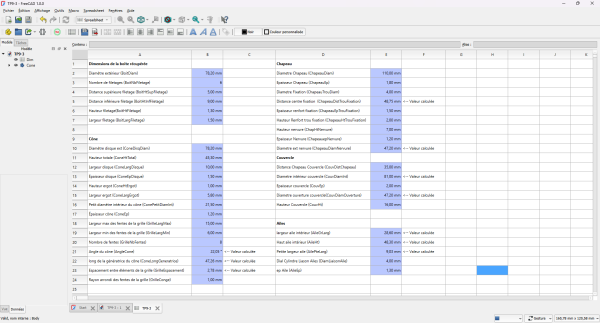 le cône filtre modifié par rapport au TP 9-3 pour faciliter l'impression 3D et permettre une recalcul complet de la grille en cas de modification des valeurs dans la feuille de calcul ;