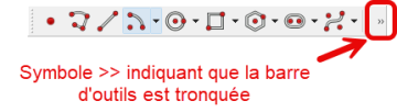 Suivant la taille de votre écran, certaines barres d'outils peuvent être tronquées : il faut cliquer sur le bouton >> pour faire apparaître tous les boutons de la barre d'outils ;