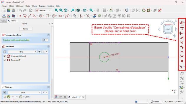 xxtuto1pour l’ouvrir dans l’atelier SketcherDéplacer par exemple la barre d’outils [Aide]