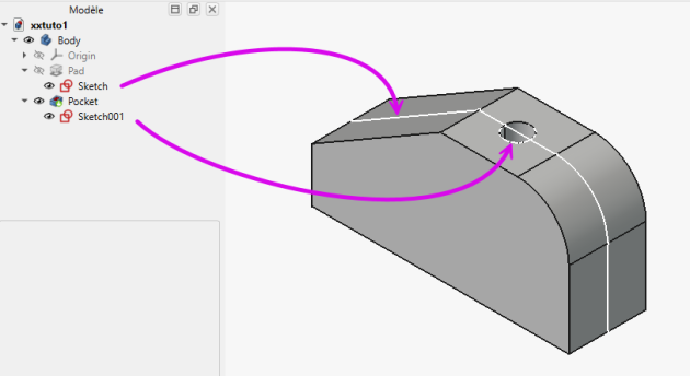 dans la vue 3D en cliquant sur les boutonsSketch001