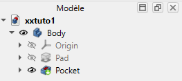 xxtuto1.FCStd, xx représentant vos initiales, à l'aide de la commandeFichier → Enregistrer Sous...;Dans le panneau