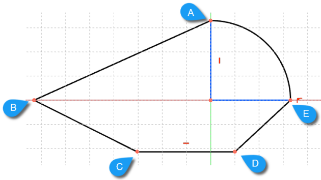 joignant les points A, B, C, D, E, en observant attentivement le pointeur de la souris lors de la création de la polyligne : la contrainte de coïncidence