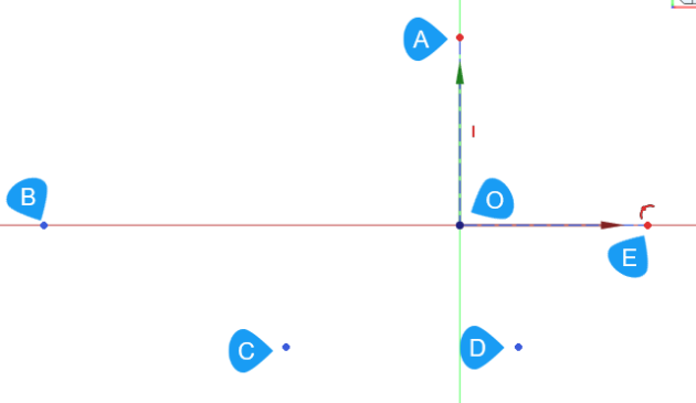 en cliquant successivement les points O, E, A ; (Cliquer droit pour sortir de la commande Arc