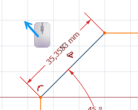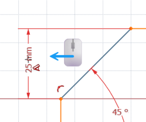 , puis cliquer gauche sur la ligne inclinée et déplacer le pointeur de la souris suivant le sens de la flèche bleue ci-dessouset vérifier que vous pouvez saisir au choix :