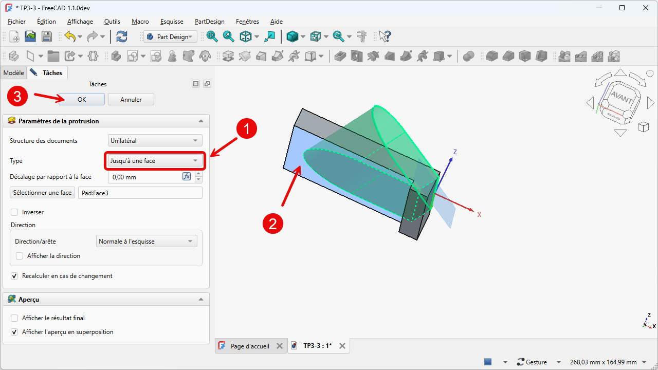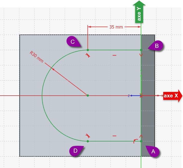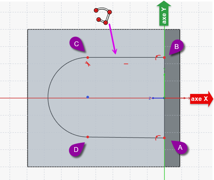 Modèle, masquer le plan de référence à l'aide du boutonpour mieux voir l'esquisse ;