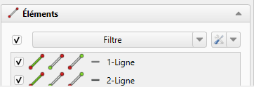 Liste des géométries de l'esquisse : le menu contextuel (clic droit) permet notamment de supprimer une géométrie ;