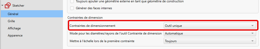 Bouton déroulant permettant d’ajouter des contraintes dimensionnelles ;
