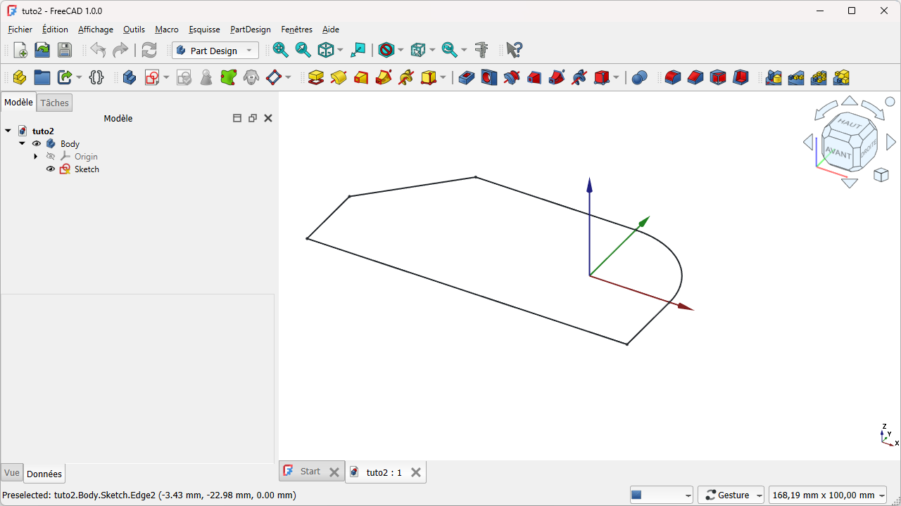 tuto2.FCStddans FreeCAD ;Enregistrer ce document sous le nom