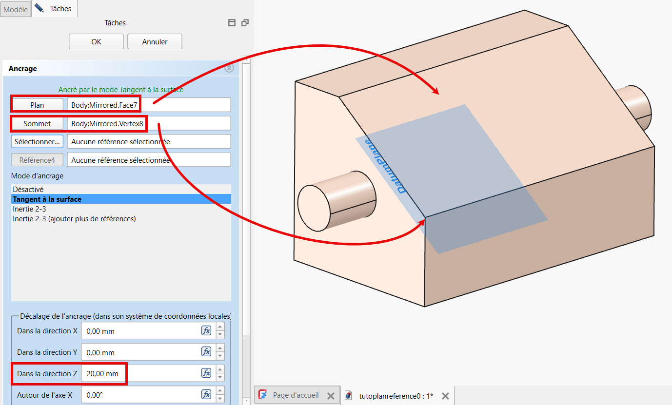 - soit créer un nouveau plan de référence à partir de la commande Plan de référence