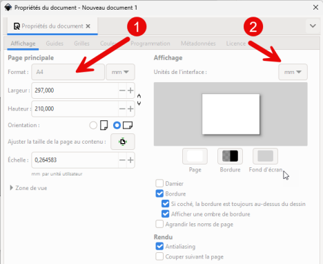 Fichier → Propriétés du documentet régler les paramètres ci-dessous :