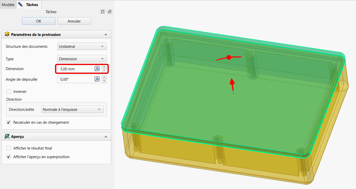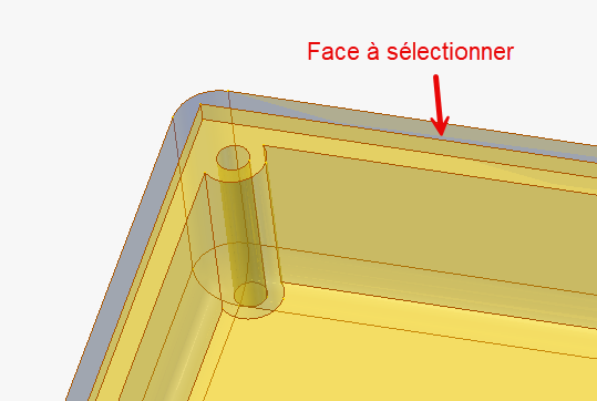 Sélectionner la face supérieure de la sous-forme liée et ajouter une nouvelle esquisse