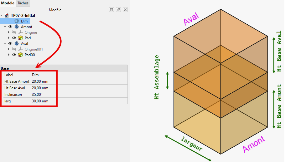 Télécharger sur votre ordinateur le fichier TP07-2-initial.FCStd et l'ouvrir dans FreeCAD ;