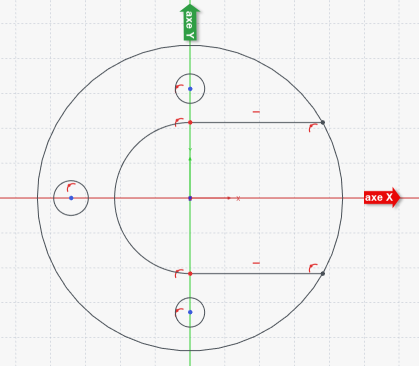 , puis cliquer sur le centre d'un petit cercle, positionner la contrainte et saisir la distance de centre par rapport à l'origine ;
