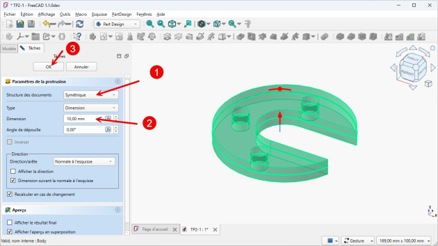 TP2-1dans FreeCAD ;Créer un nouveau corps