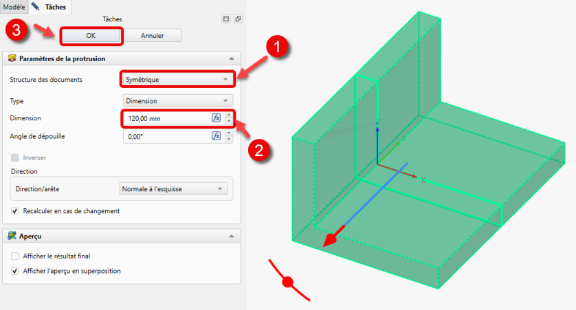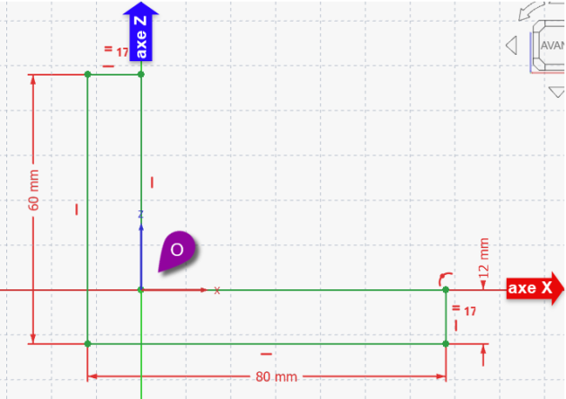 1ère étape : nous allons modéliser l'équerre sans ses trous ;