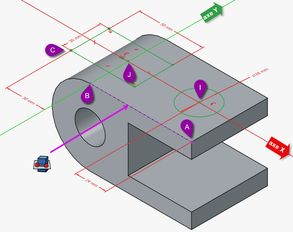 L’esquisse est alors ancrée à ce support via un système de coordonnées appelé Attachment.