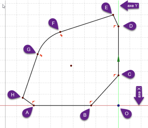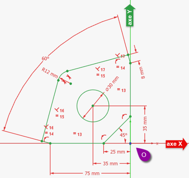 Contour approximatif de la 1ère esquisse Tableau des contraintes automatiques à exploiter Géométries