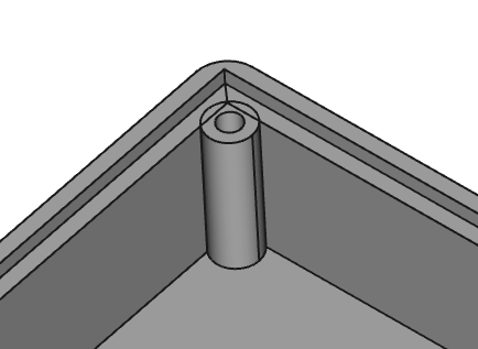 3ème étape : création d'un cylindre destiné à recevoir une vis de fixation pour le couvercle :