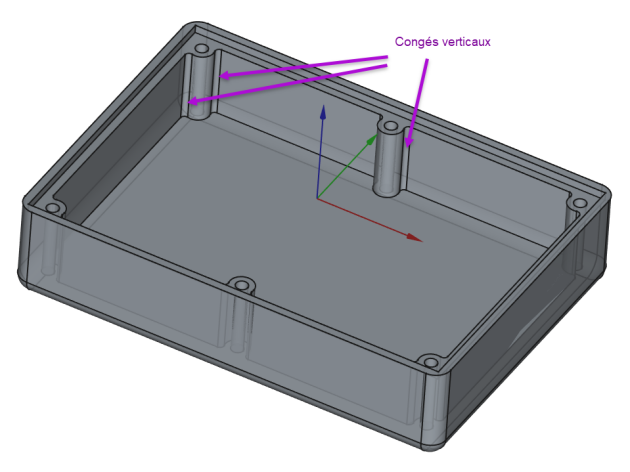 de 1 mm à l'intersection des cylindres et des faces intérieures verticales de la boîte ;