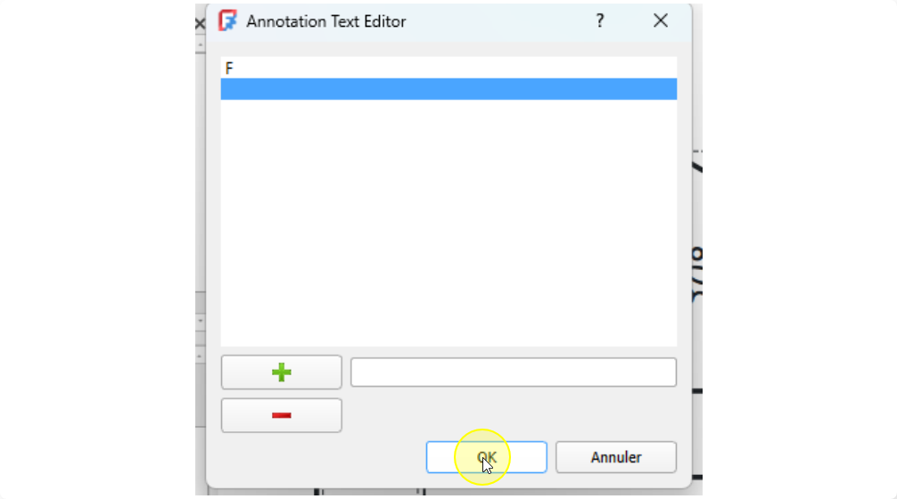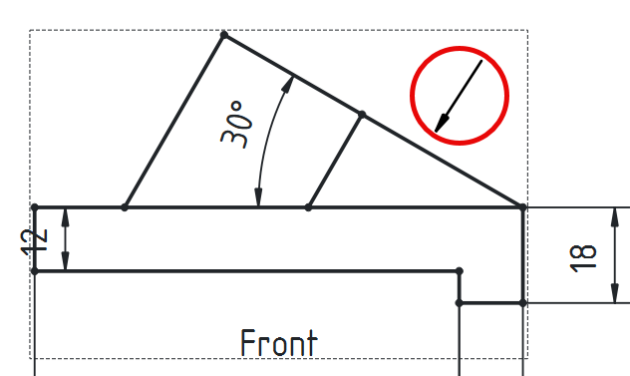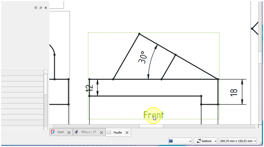 Insertion de la direction pour la vue obliqueProcédure - Pour insérer la flèche montrant la direction de la projection de la vue suivant F⚓ProcédureSélectionner la vue de face⚓Sélection de la vueCliquer sur la commande Ajouter une ligne de repère à la vue ;⚓Sélectionner la commande Ligne de repèreCliquer sur le bouton choisir des points ;⚓Cliquer sur le bouton Choisir des pointsCliquer gauche pour saisir le premier point et double-cliquer gauche pour saisir le deuxième point de la flèche et clôturer la saisie ;⚓Saisir les points du repèreSi la flèche reste horizontaleModifier les préférences de l’atelier TechDraw :Désactiver Ligne de repère horizontale automatiqueSi nécessaire ajuster le symbole de début et de fin ;⚓Ajuster les symboles de début et de finValider⚓Insertion de la flècheProcédure - Pour insérer la lettre F⚓ProcédureCliquer le sur bouton Insérer une annotation ;⚓Cliquer sur la commande AnnotationDouble cliquer sur l’annotation ;⚓Édition de l’annotationModification de l’annotation et valider⚓Positionner l’annotation ;⚓Positionner la lettre F
