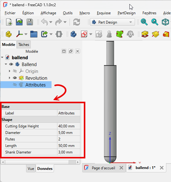 un fichier FreeCAD contenant la modélisation 3D de l’outil ,